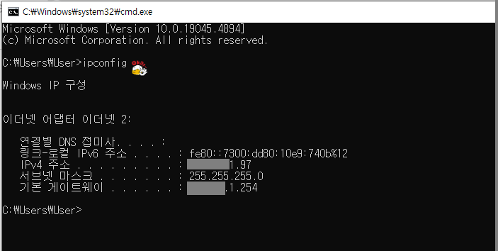 Windows 사용자는 간단한 명령어를 통해 내부 IP를 확인할 수 있습니다.