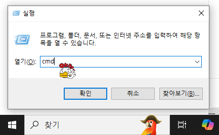 (1)명령 프롬프트 실행: 키보드의 Windows 키 + R을 눌러 실행 창을 열고 cmd를 입력한 후 Enter를 누릅니다.