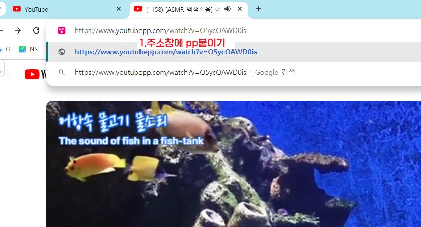 1. 유튜브 주소창에서 .com 앞에 pp붙이기 → https://www.youtubepp.com/watch?v=O5ycOAWD0